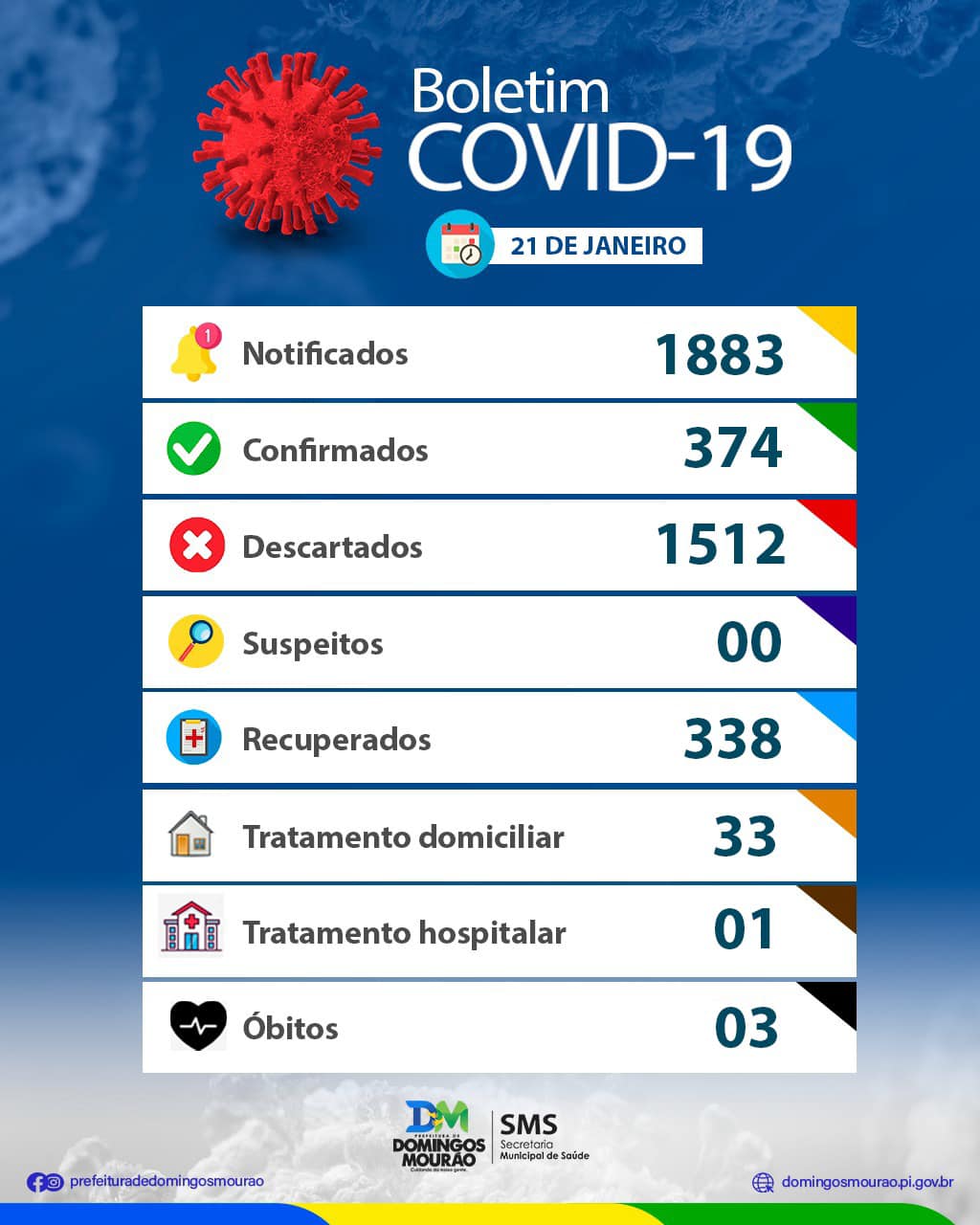 Boletim Coronavírus em Domingos Mourão - Atualização em 21/01/2022