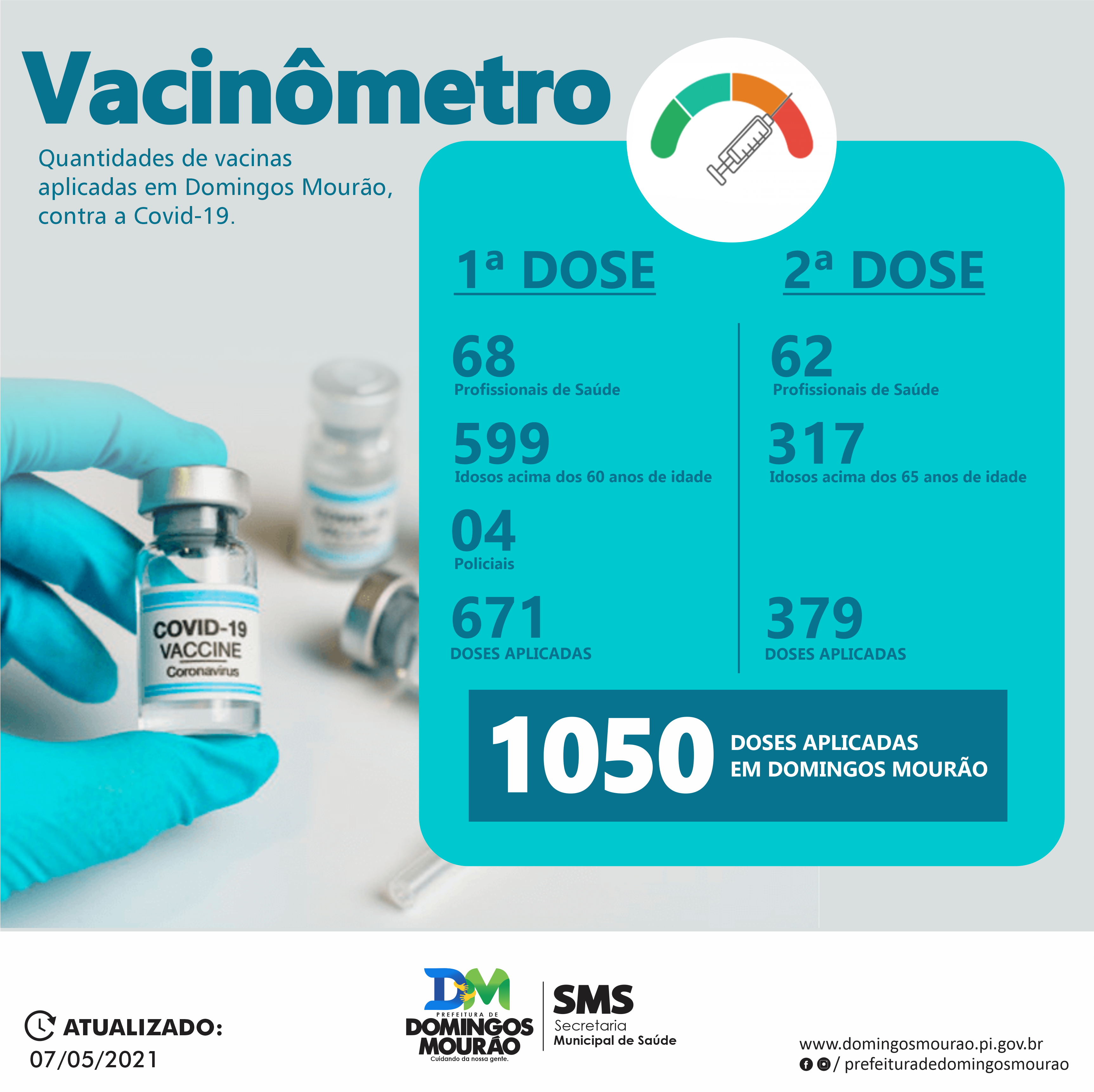 Confira a atualização do vacinômetro com o número de imunizados contra a Covid-19 em 07 de Maio.