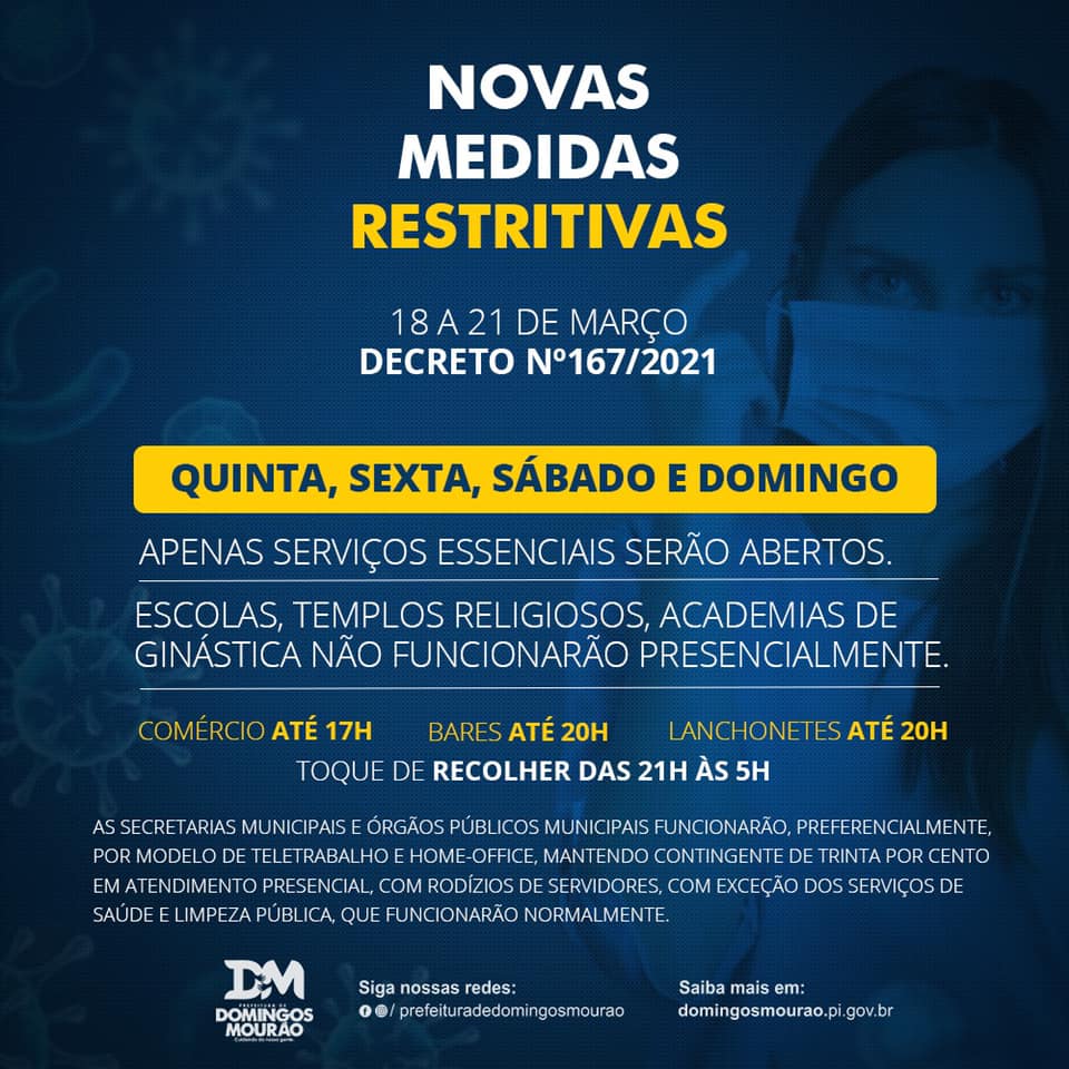 Confira as novas medidas para a contenção do coronavírus em Domingos Mourão