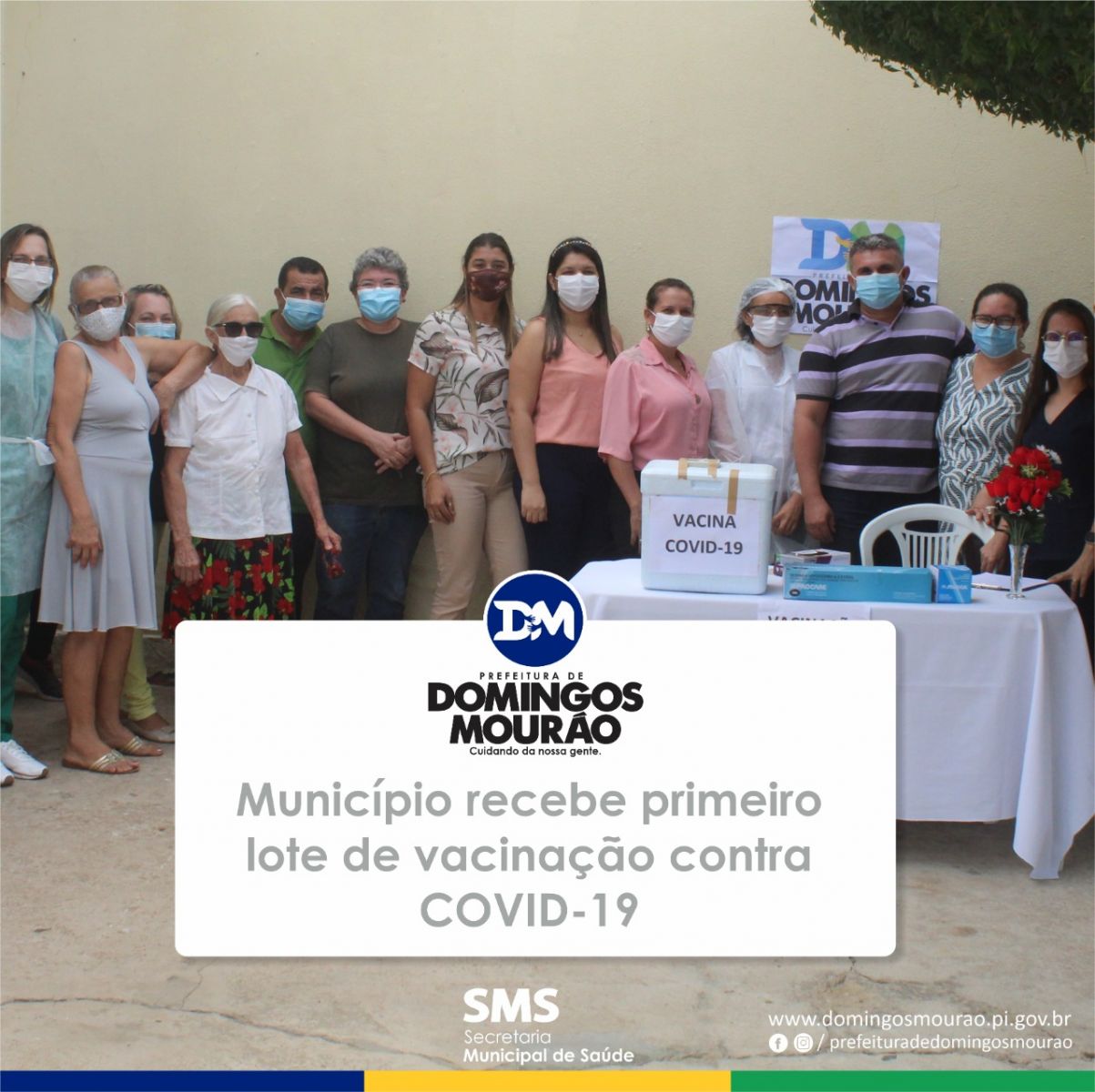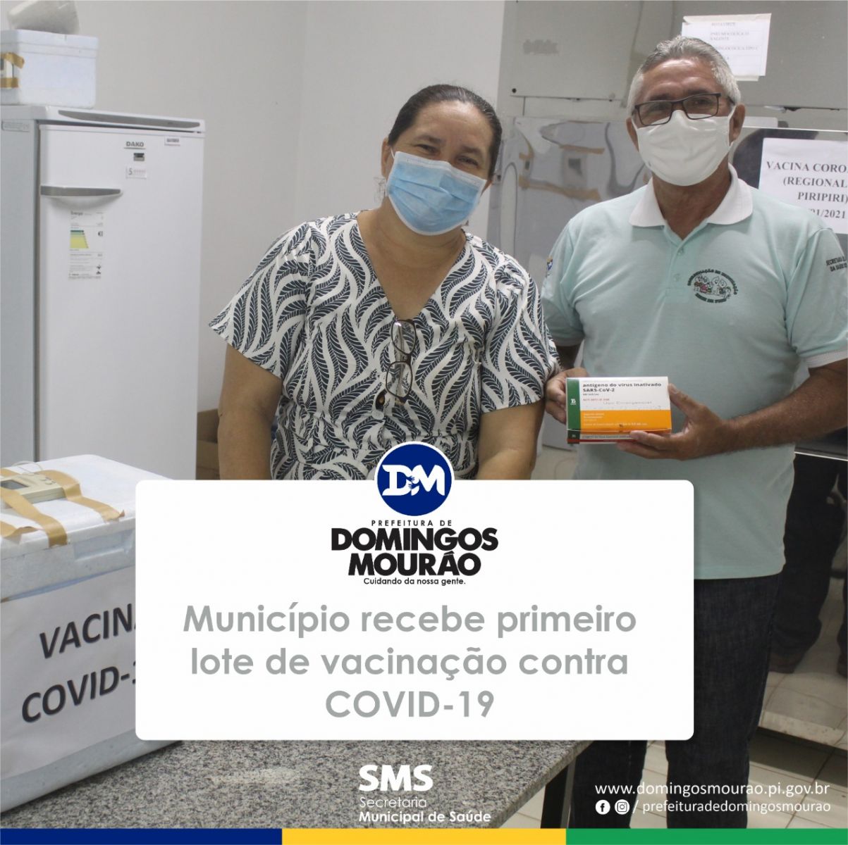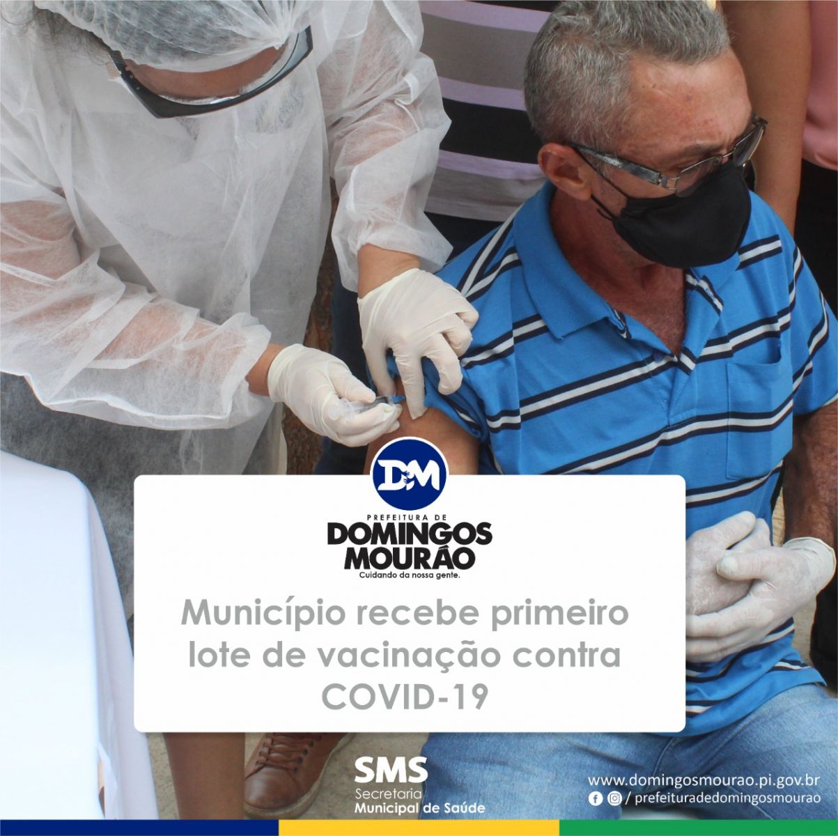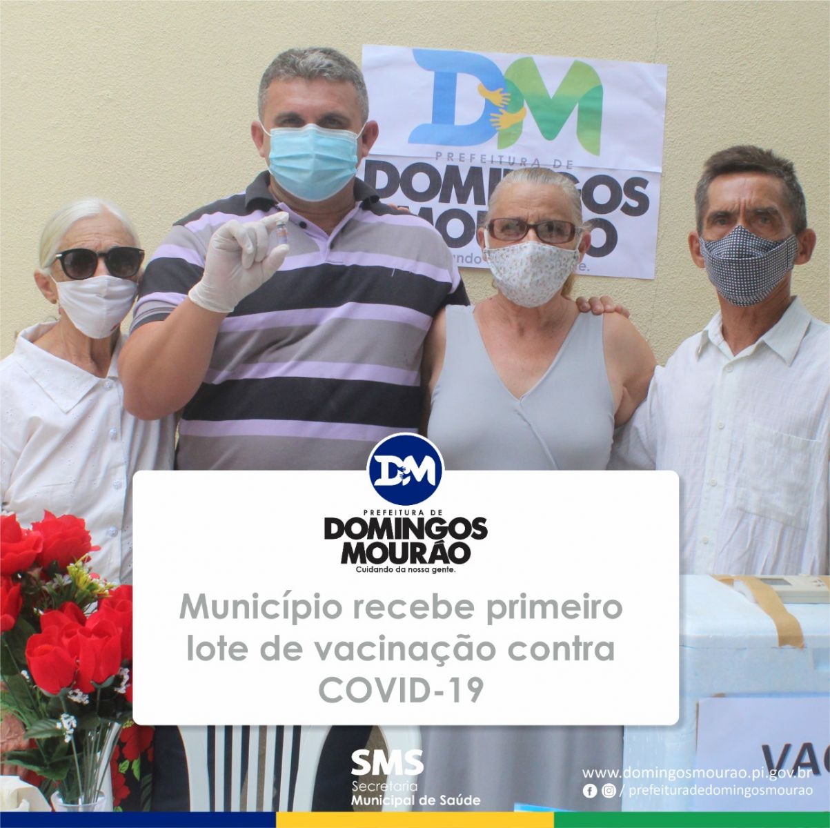 Os profissionais de saúde da Unidade Básica de Saúde Joaquim Ferreira Sobrinho em Domingos Mourão, receberam as vacinas contra a COVID-19. E o senhor Genivaldo Amorim, de 53 anos, motorista da saúde, foi o primeiro a receber a dose da vacina no município.
