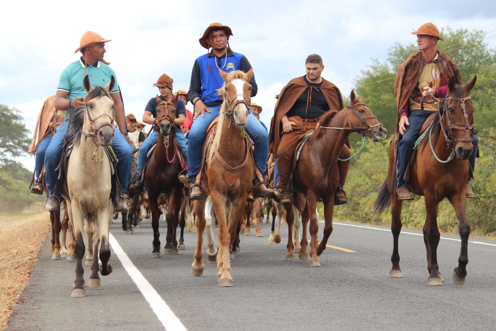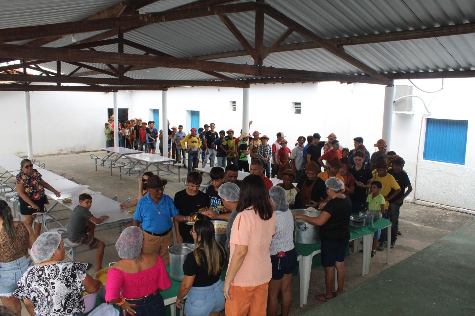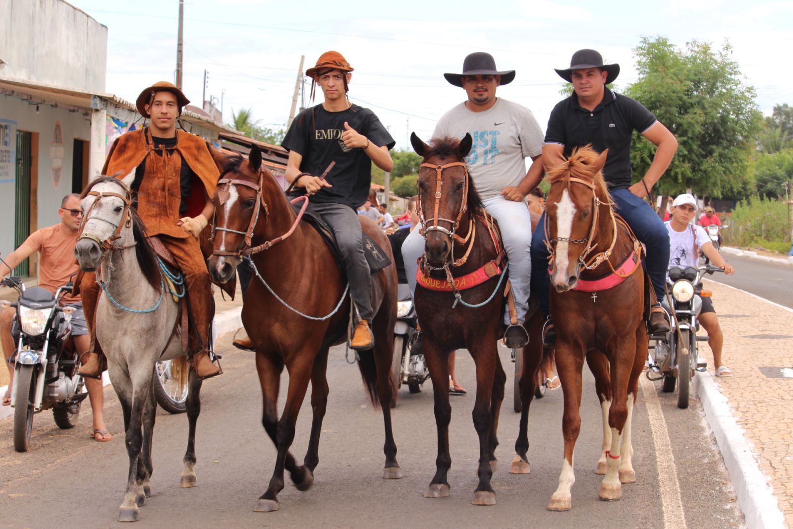 Em seguida, os vaqueiros se dirigiram em cavalgada até a localidade Cachoeirinha, onde a Prefeitura preparou uma grande festa em homenagem aos vaqueiros, símbolo do nosso sertão, com sorteios de brindes, muito forró, além de servir almoço a todos os participantes, na quadra de esportiva da comunidade.