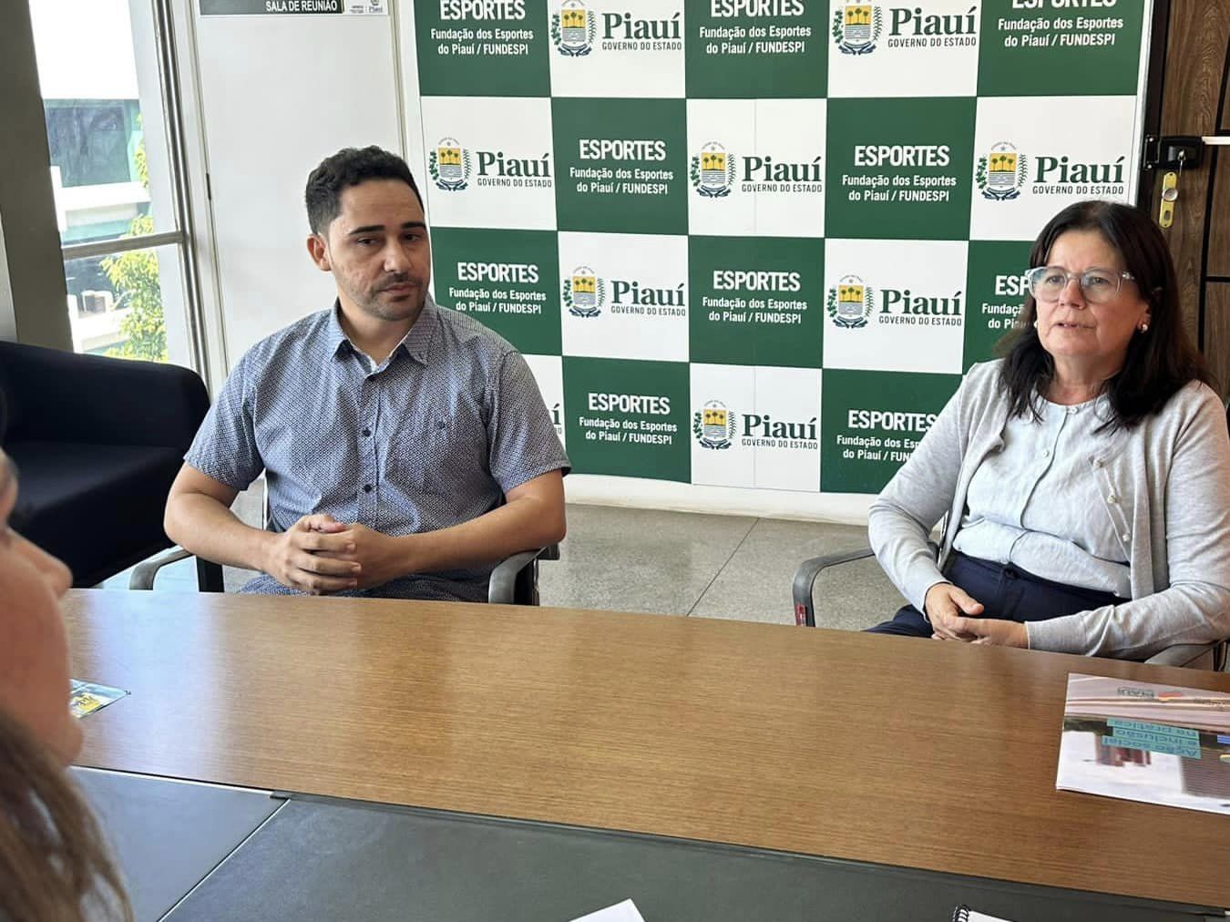 Nesta quinta-feira (25), a Prefeita de Domingos Mourão, dona Nelda Gomes, esteve juntamente com o Secretário de Esportes, Ulisses Barbosa, reunida em Teresina com a Secretária Estadual de Esportes do Piauí, Josiene Campelo.