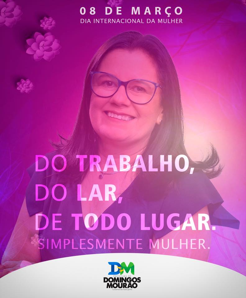 “Comemoramos no dia de hoje, 08 de março, o Dia Internacional da Mulher, uma data importante que simboliza as lutas e conquistas alcançadas pelas mulheres na sociedade. Deixo aqui a minha homenagem em especial a todas cidadãs domingos-mouranenses, mulheres fortes e cheias de garra e determinação. Que essa data seja para reafirmar todos os valores que vocês nos ensinam diariamente”.