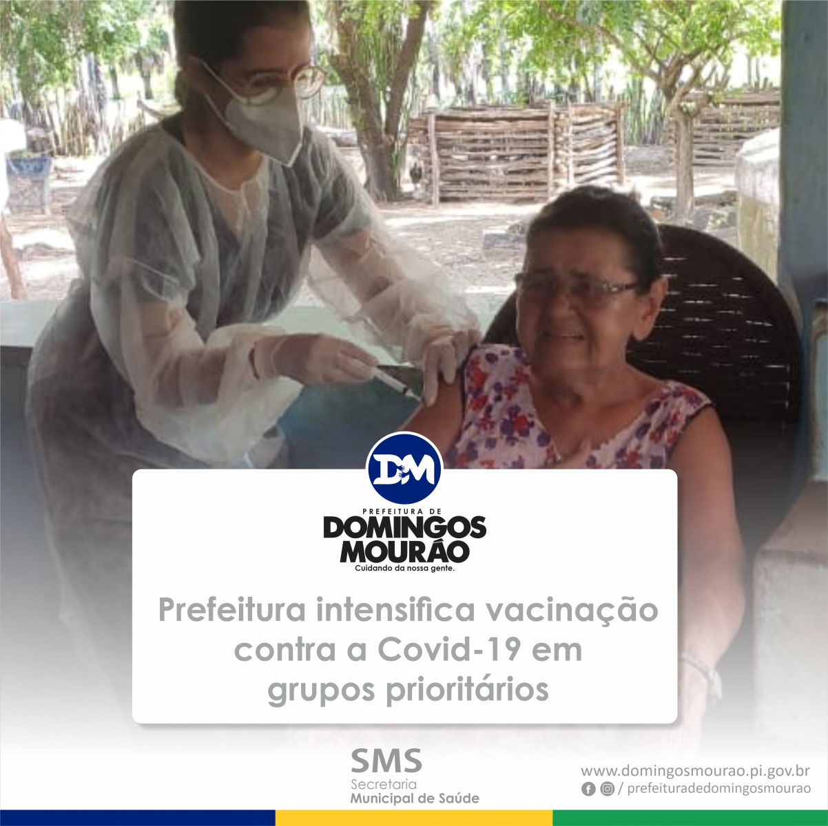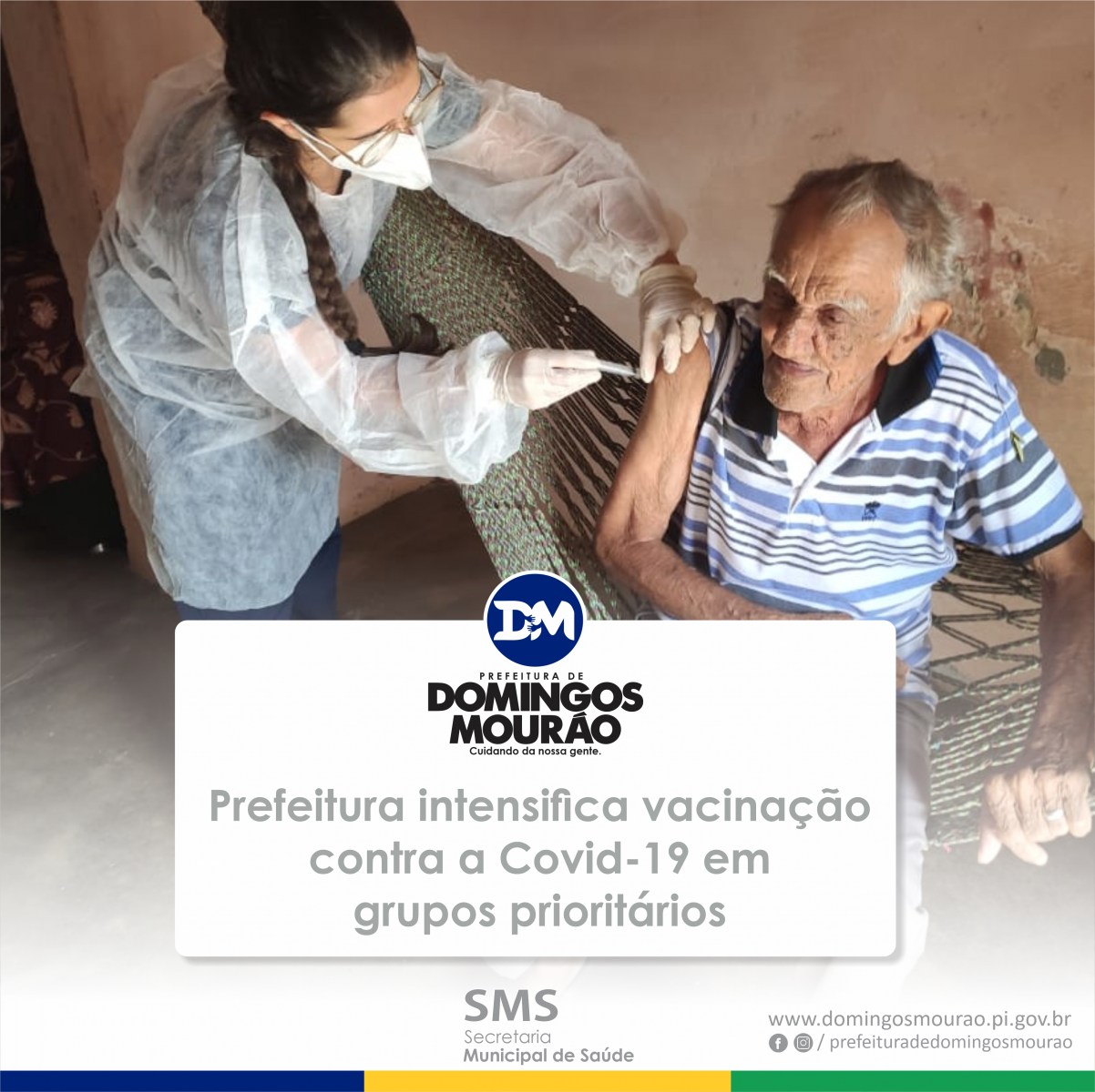 Nesta quarta-feira (03), equipes da SMS - Secretaria Municipal de Saúde de Domingos Mourão, estão realizando a vacinação em domicílio nas localidades Várzea, Goiabeira, Cachoeirinha, Culuminquara, Pintado, Tamboril, Malhada e Tinguis em idosos acima de 85 anos de idade.