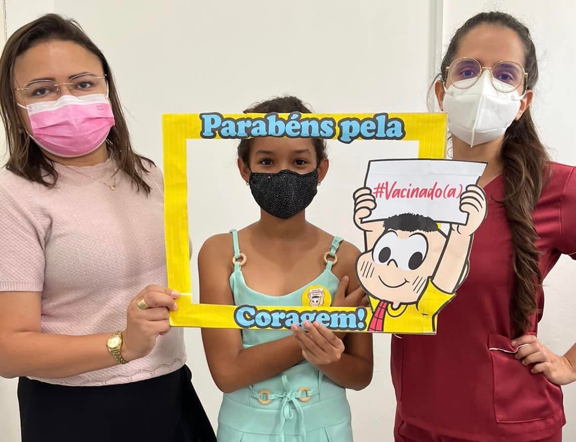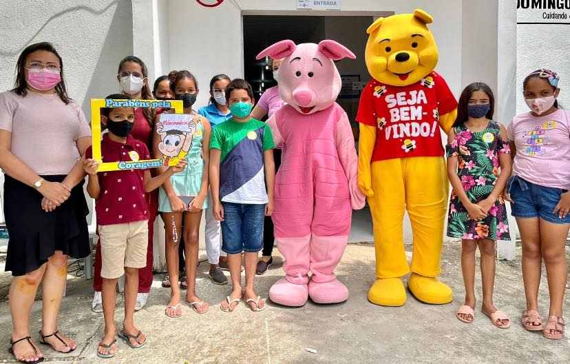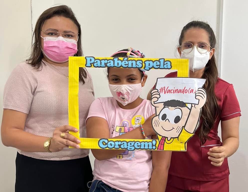 A vacinação contemplou as crianças da localidade Cachoeirinha e localidades próximas, com prioridade de imunização concedida às crianças com Deficiência Permanente e com Comorbidades.